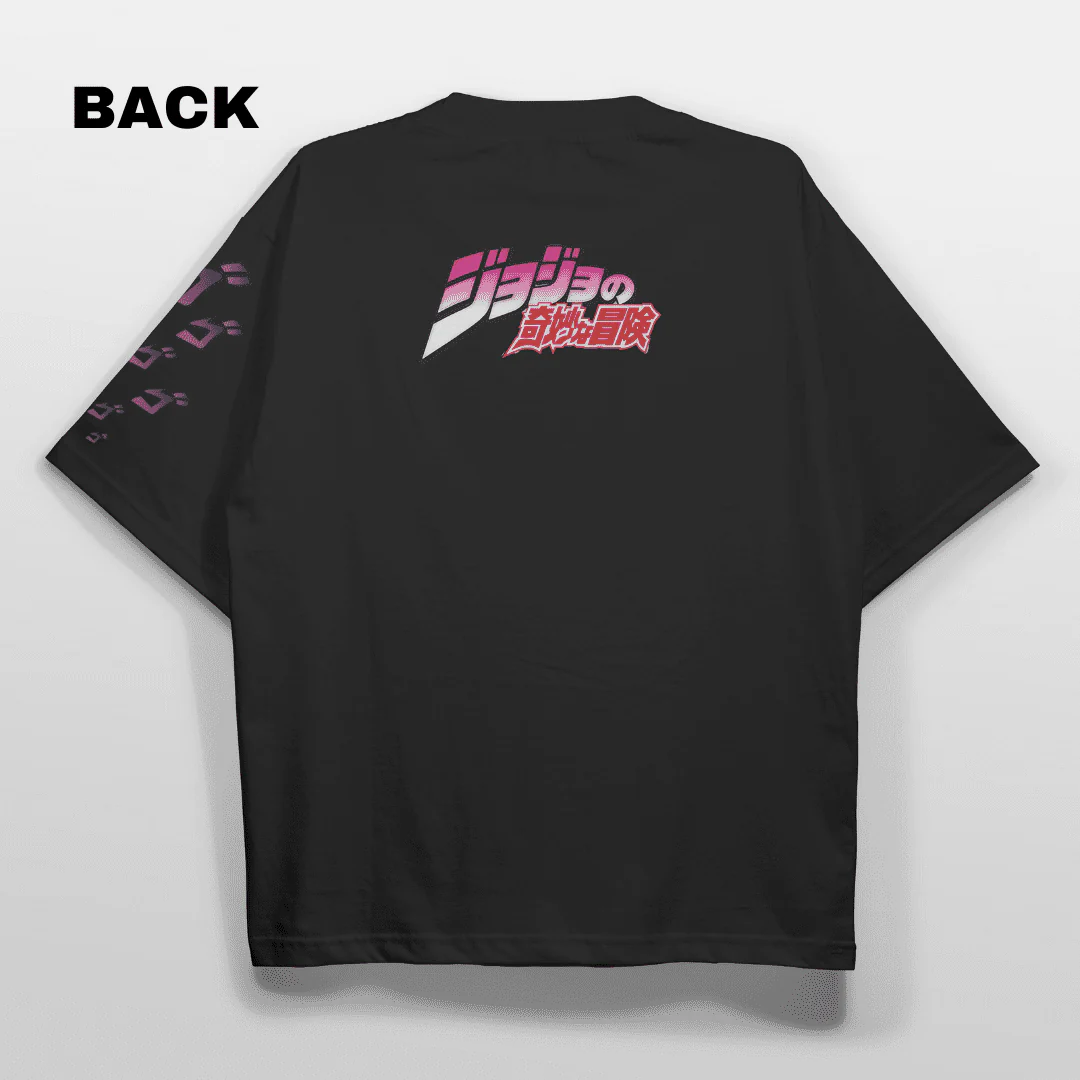 • Sleeve Detail: Adorned with the iconic “Menacing” (GoGoGo) onomatopoeia creeping up the sleeve in a striking purple gradient—a subtle nod to the looming presence of DIO.